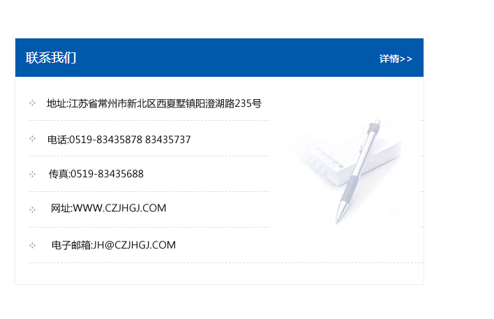 傳真:0519-83435688    郵編:213135    網址:WWW.czjhgj_com.jc818.com    電子郵箱:JH@czjhgj_com.jc818.com
